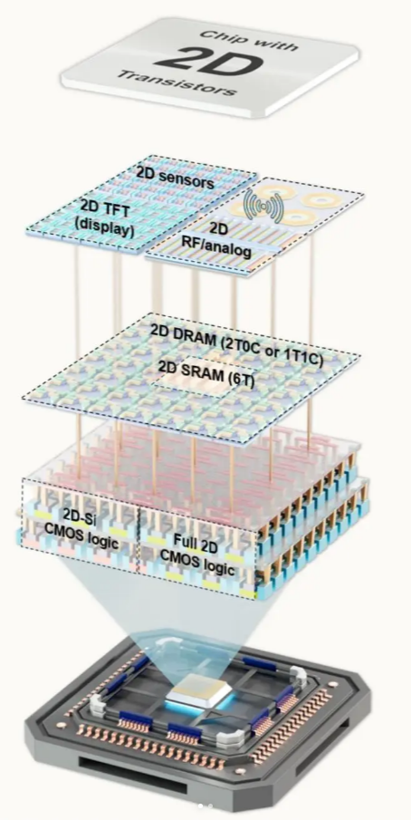 2D semiconductors, distinguished by their atomic-scale thickness (often just a few nanometers) and near-zero leakage electrical properties, represent a paradigm shift from traditional silicon-based chips. For decades, chip miniaturization relied on “carving” ever-smaller features into silicon wafers – a process now nearing physical limits at the 2nm node. 2D materials, by contrast, allow manufacturers to stack ultra-thin layers like “building blocks”, turning chip production into a “puzzle assembly” that bypasses many of silicon’s constraints.